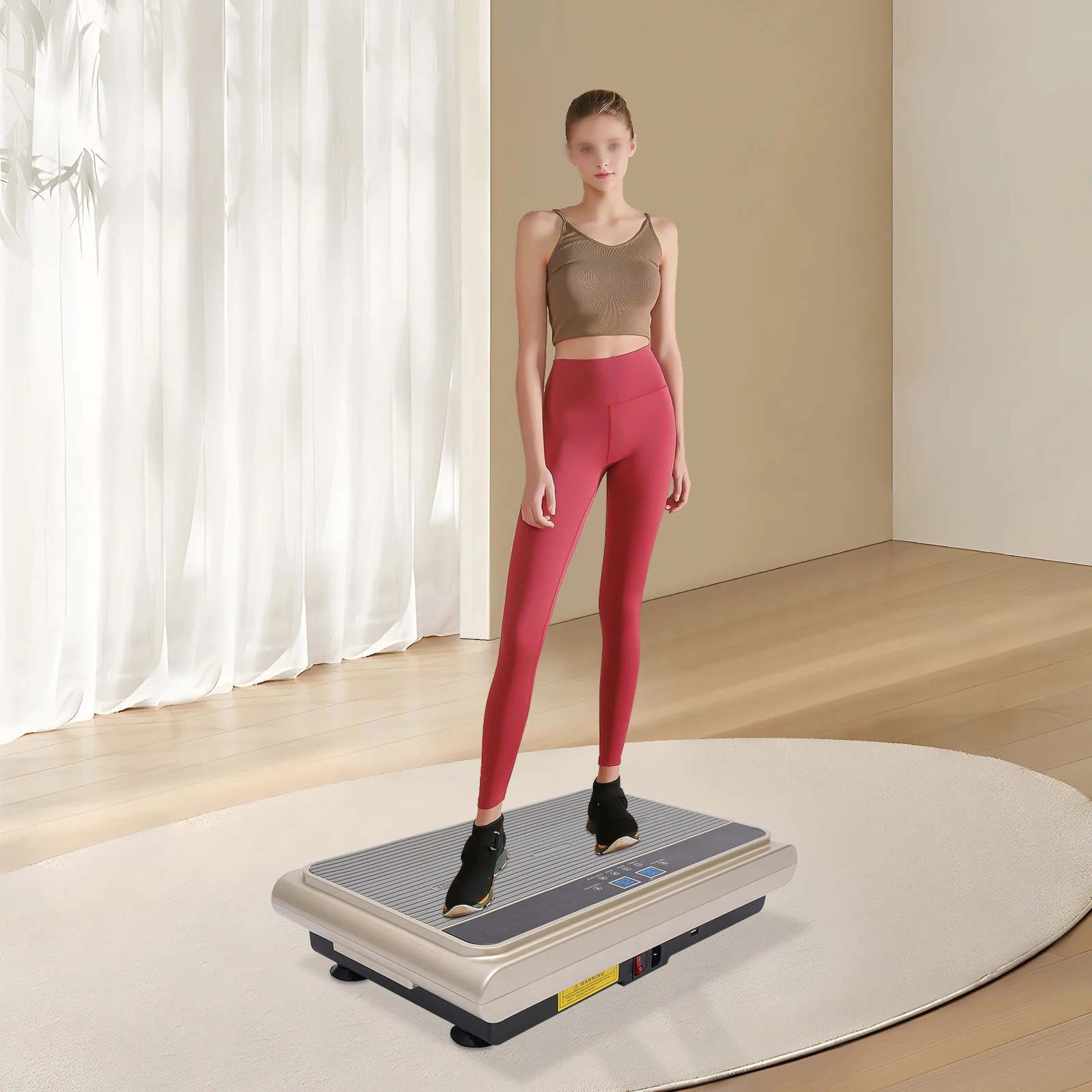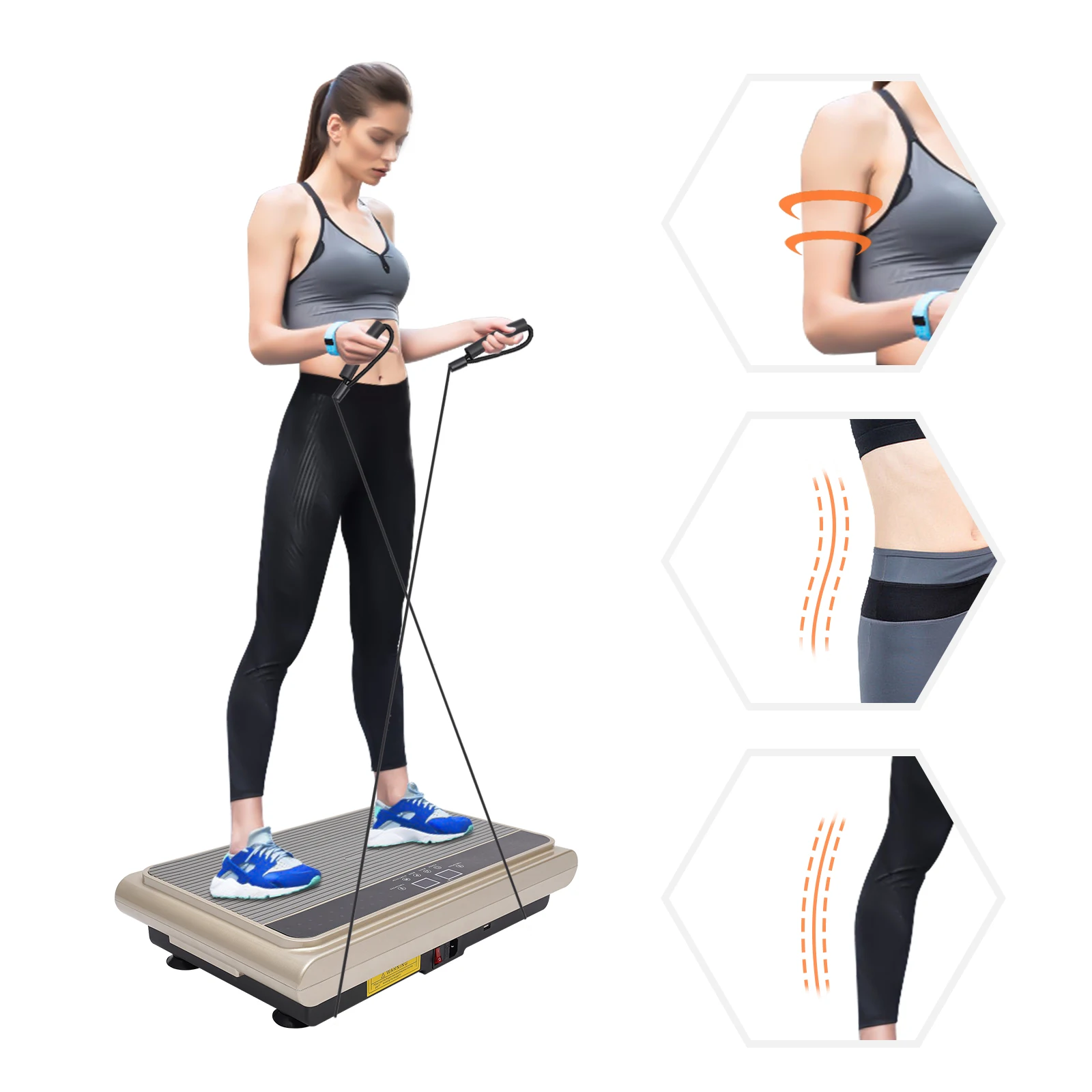 With its ergonomic design, our vibration plate not only helps you to strengthen your muscles, build flexibility, and improve blood circulation but also helps you build your dream body. Thanks to its compact size and low noise, you can use it to exercise at home. Adjustable time, speed levels and vibration modes can meet your different exercise needs. Equipped with Bluetooth, colorful lights, and a clear LCD screen, it will be your ideal companion for exercise and fitness!